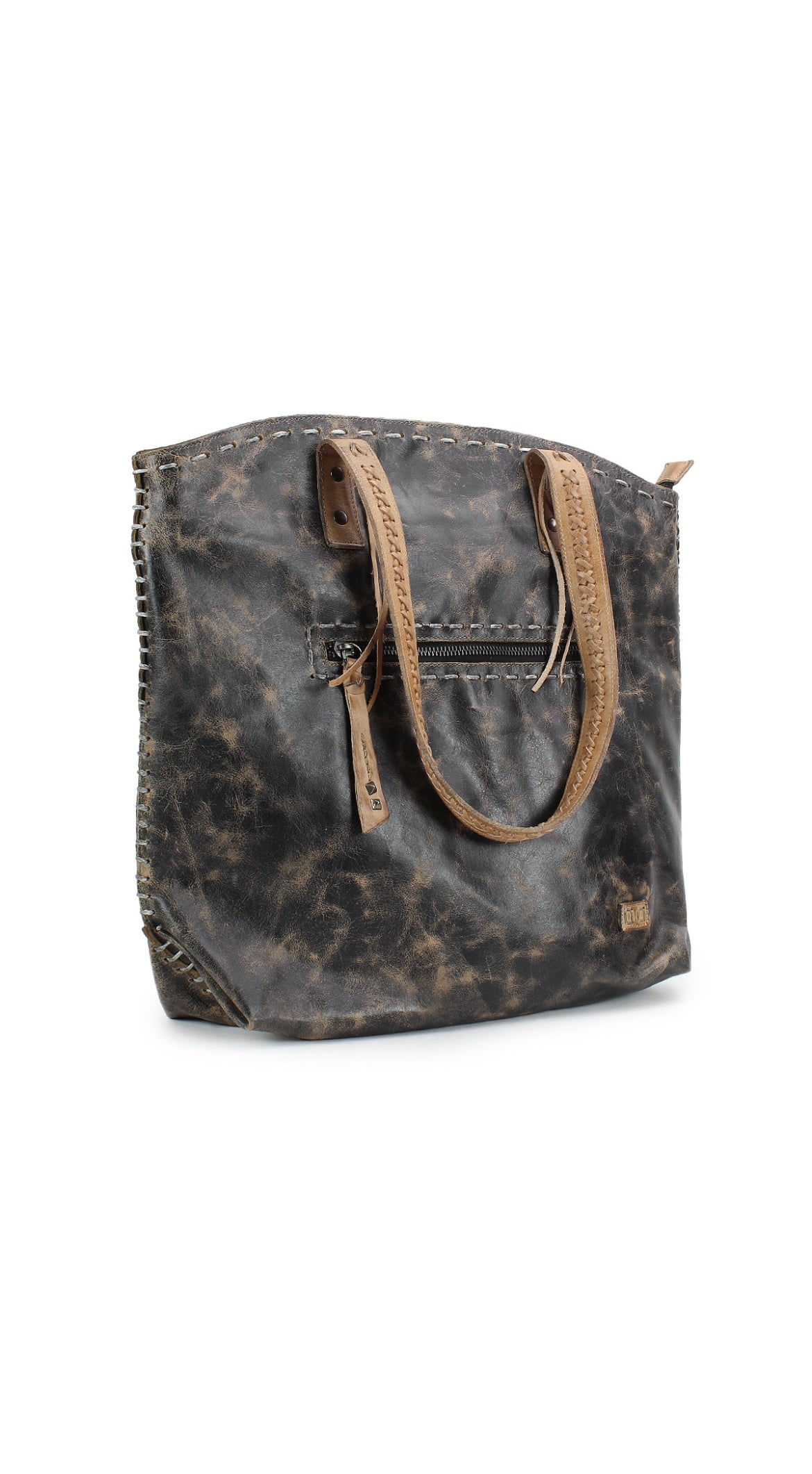 Barra II features decorative woven stitching detail around the edges and handles, adding a handcrafted touch to its classic silhouette. A front zippered pocket and interior compartments—including a center divider, one zip pocket, and two slip pockets—make organization effortless. Finished with organic cotton lining, metal stud accents, a secure zipper and magnetic snap closure, this tote is functional, timeless, and full of character.