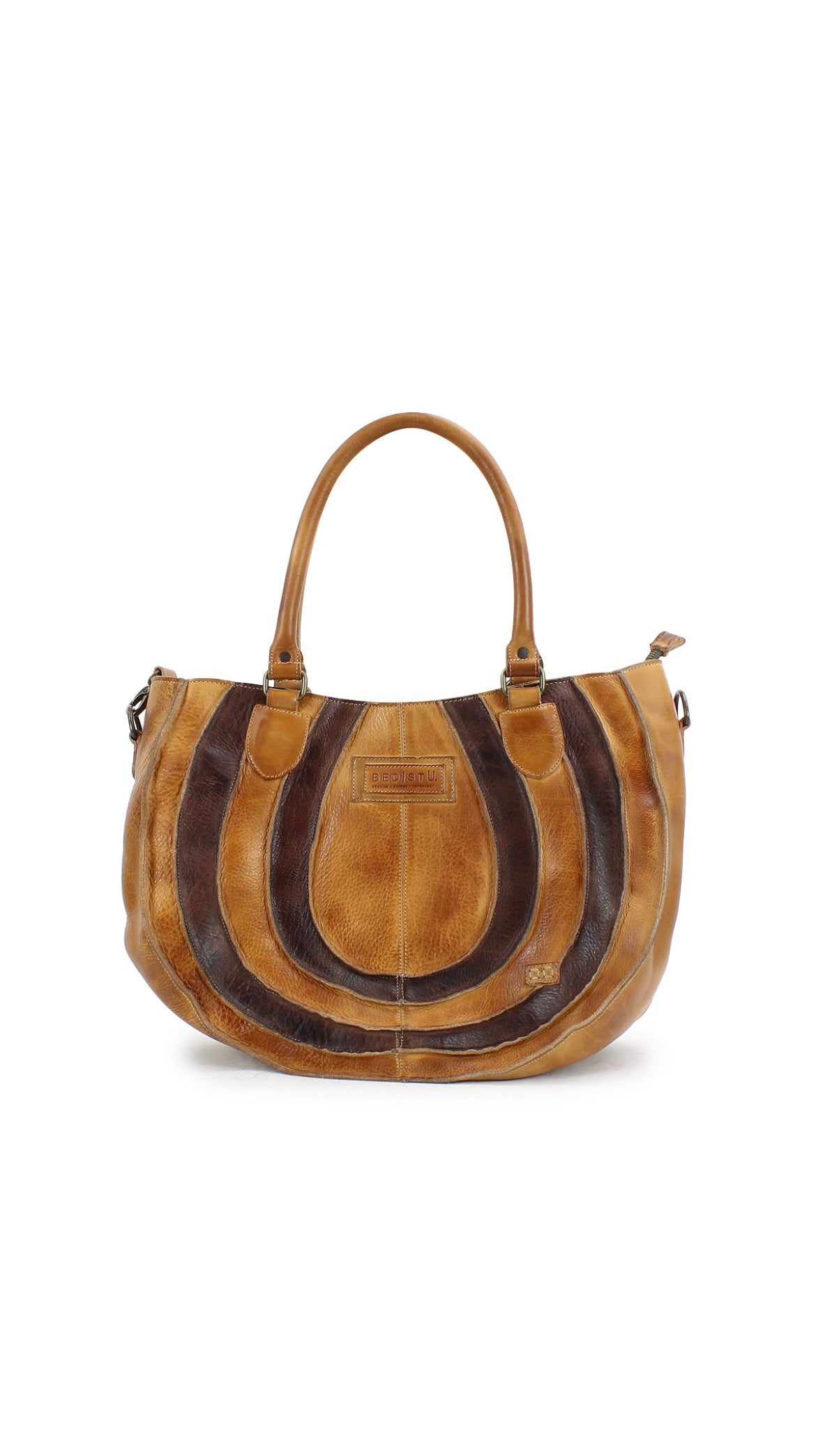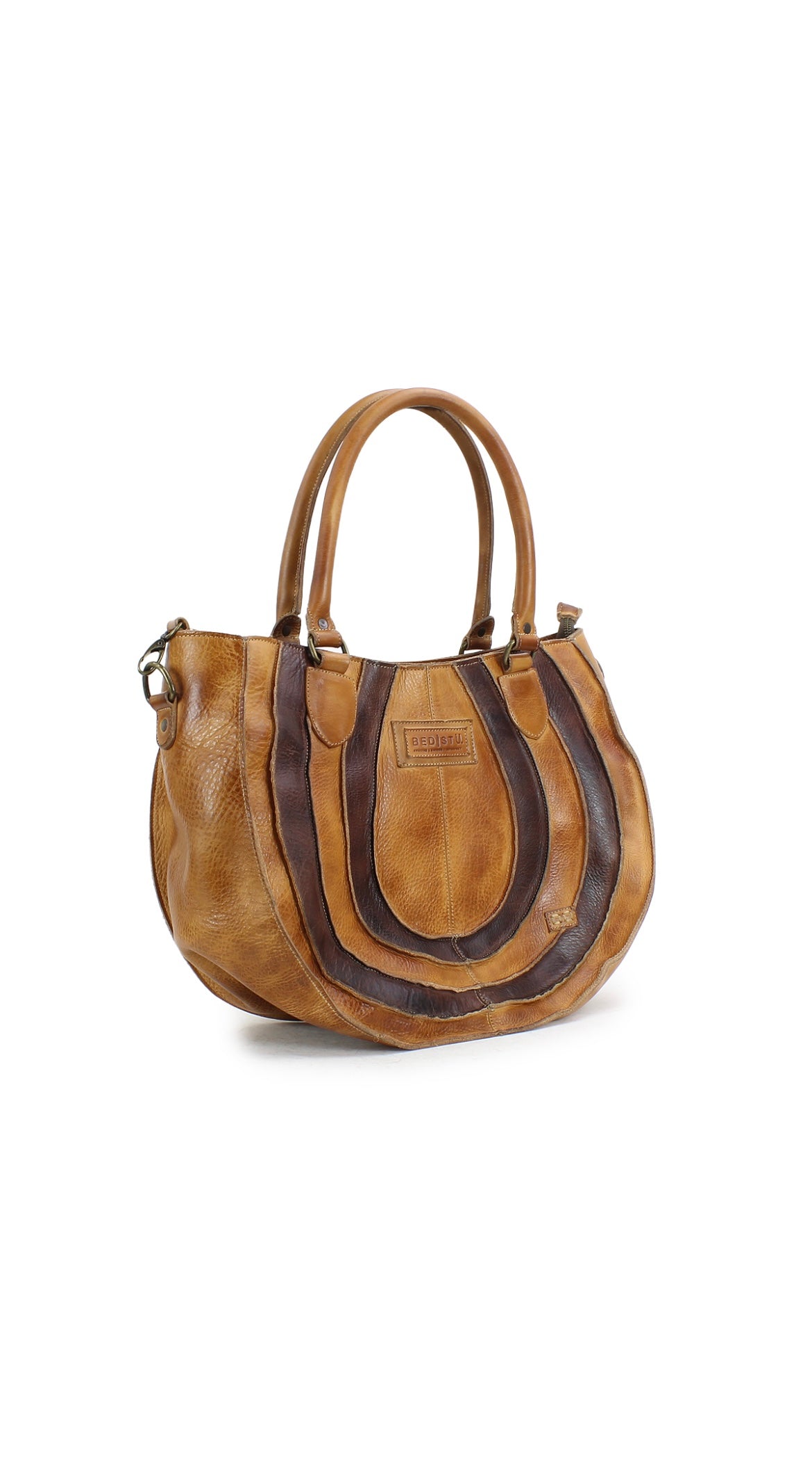 - Two-toned large tote with leather overlays and piping for dramatic stand-out style