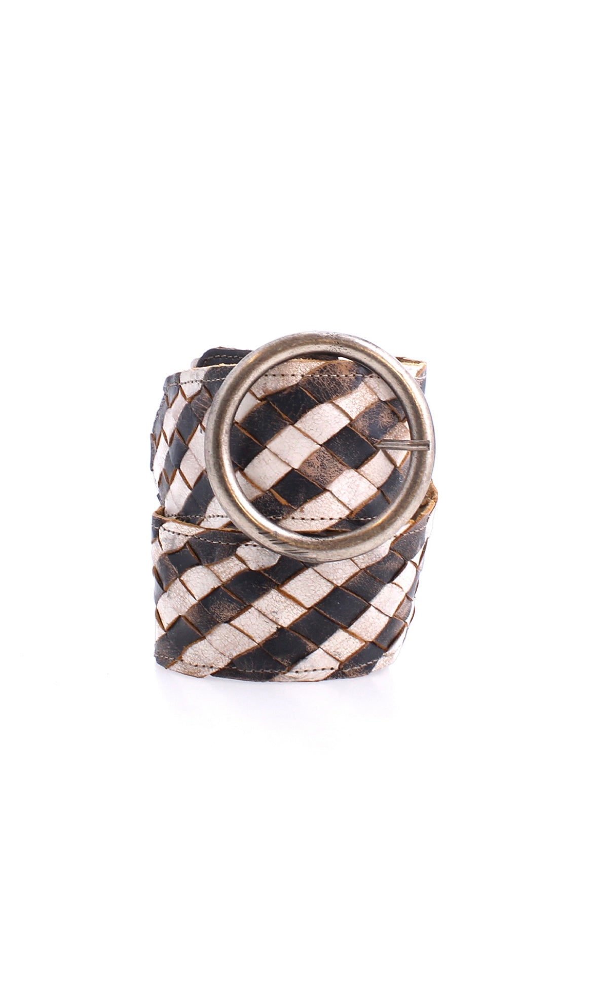 Created from meticulously woven distressed leather and adorned with a round brass-tone buckle, the Dreamweaver effortlessly infuses a touch of vintage allure into your style. Whether worn on the waist or the hip, this belt stands as a remarkable addition to any wardrobe.