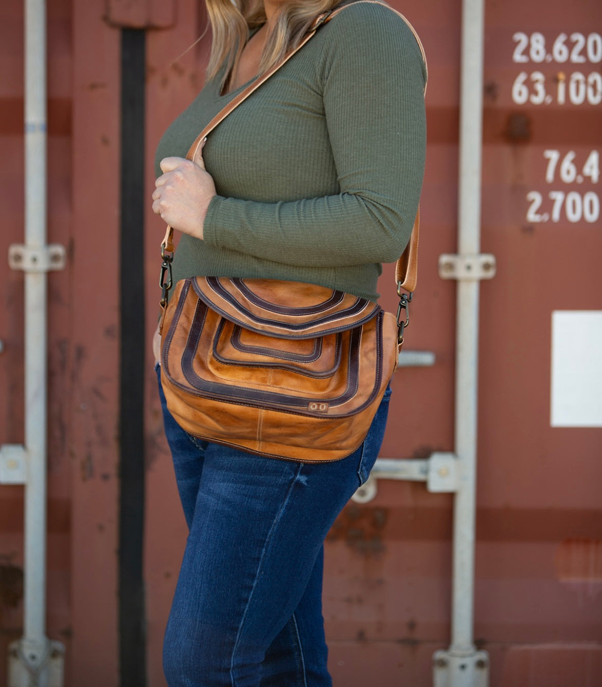 - Two-toned crossbody with removable and adjustable strap