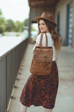 - Carry by hand, on your shoulder or upon your back, Patsy is a fun, cutesy addition with so many wearable options. Zip top closure to keep all things safe, large front pocket and back zipper pocket makes this bag a win-win on all fronts. Patsy shows off her veg tanned leather with diamond shaped cutouts and hand stamped details.